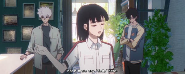 What was outright amazing was the soundtrack and animation. Soundtrack wise, I’ve been in love with the opening for two years now. It’s been randomly popping up and playing in my head since I first heard it. It’s so catchy. The ending is great too, and I’m a sucker for great transitions and every episode the transition from actual episode to ed is lovely. That phone disconnect sound just works. Even the ambient music that’ll play throughout episodes is fantastic. The animation is nothing I haven’t seen before but still damn good. There’s something about backgrounds and some things that aren’t characters being sort of watercolor in texture. It stands out in a good way.