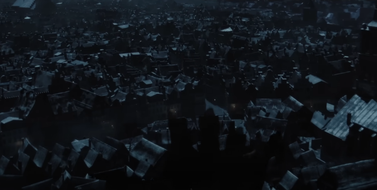 A super cut of this movie’s shots and transitions would be a 10/10 on its own. This is how you shoot a movie, this is how you use colors and framing. This is how you capture a gothic vibe. The nighttime in this movie is so gorgeous. In the forest and castle its darkness illuminated by the night sky or by the fireplace of the castle. In the city, its darkness mixed with shades of blue that enhance this menacing and almost hopeless feeling that something sinister is watching over everyone. The use of shadows and silhouettes is absolutely amazing. I could rave about particular scenes all day. From a visual standpoint, this is one of my favorite movies ever.