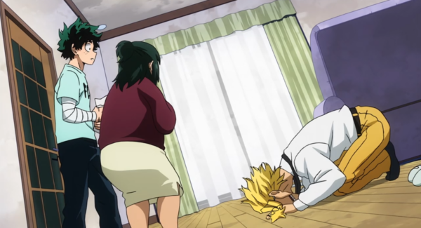 After all of these events, it only makes sense that parents are iffy on letting their kids go back to UA and move into dorms. Especially Midoriya’s mom. I love her so much. She’s just a supportive and caring mother. She sees all the damage her son is accumulating on his body and even mentally. The conversation between her, All Might and Midoriya was beautiful. Her concerns, Midoriya reading Kota’s note, and All Might bowing his head in shame and praise. Moments like those are what take the show to the next level to me. The human and personal element is never lost. All Might hugging Midoriya almost brought me to tears. This is truly the start of a new era and I can’t wait.