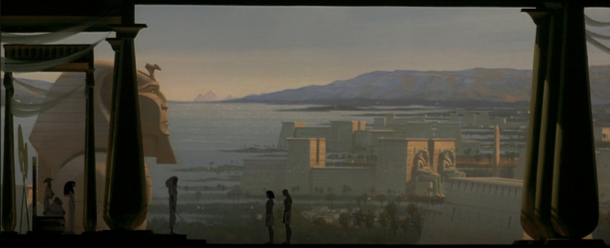 The animation is absolutely beautiful. Some of the best ever, this holds up more than well. This looks better than most things released today. Absolutely stunning. The fluid character movement, the character designs themselves, the backgrounds, the scene direction when it comes to framing and lighting it’s just chef’s kiss. Me and my girlfriend literally had multiple jaw dropped moments watching this movie. Which is so crazy for something that is older than we both are. Then you add the music which is so so good. Again, stage play vibes with that, but also there are some scenes where it’s just dead silent. All you hear is the quiet ambient noise and I’ve talked about this before in other reviews, but the use of silence is just as powerful as the use of sound and music. Those two things are amazing. The voice acting was okay. This was a big budget animation, so they went with Hollywood actors which means the voice acting can be a bit hit or miss but luckily enough for the characters that really matter like Moses or Ramesses, their voices are fantastic.